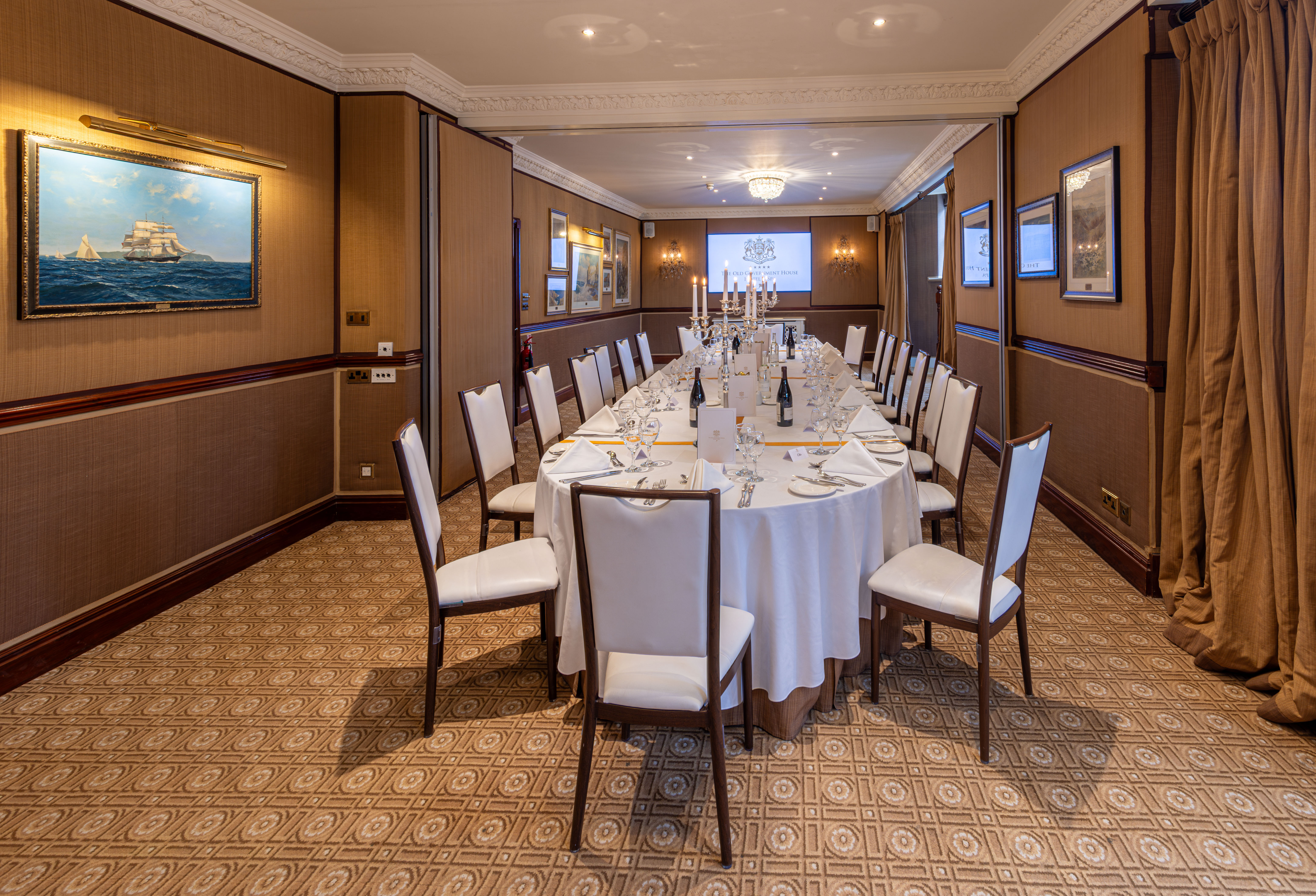 Named after Major General Sir John Colborne, Governor of Guernsey 1821-8, this conference room offers high chandeliered elegance for private dinners or the capacity to seat 110 delegates for a presentation. With its own bar and cloakroom facilities, the Colborne Room is self-contained for all events.